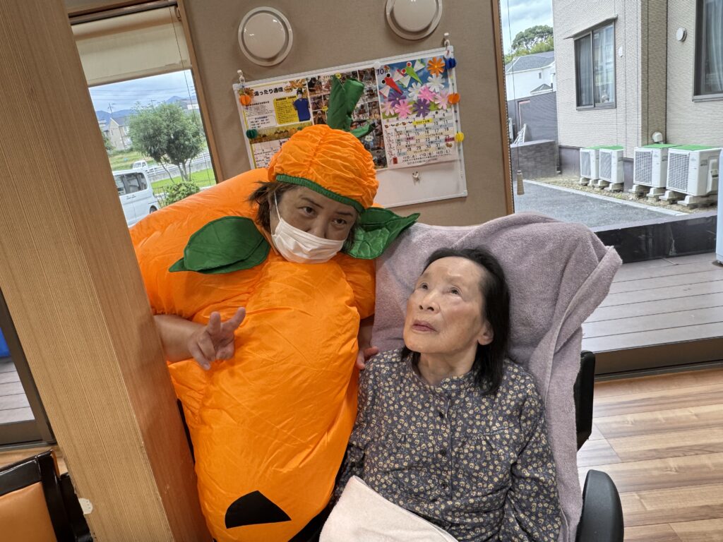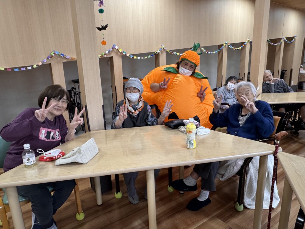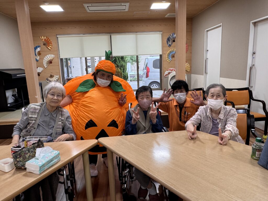 2025年10月22日 / 最終更新日 : 2025年10月25日 3nori-staff ゆっくりの和 ハロウィン🎃 こんにちは😃ゆっくりの和よりお送りします。今回はハロウィンにちなんで職員が仮装しました。ご利用者様と一緒に記念撮影をしました。 皆さんとても喜ばれ、とても楽しい時間を過ごすことが出来ました。