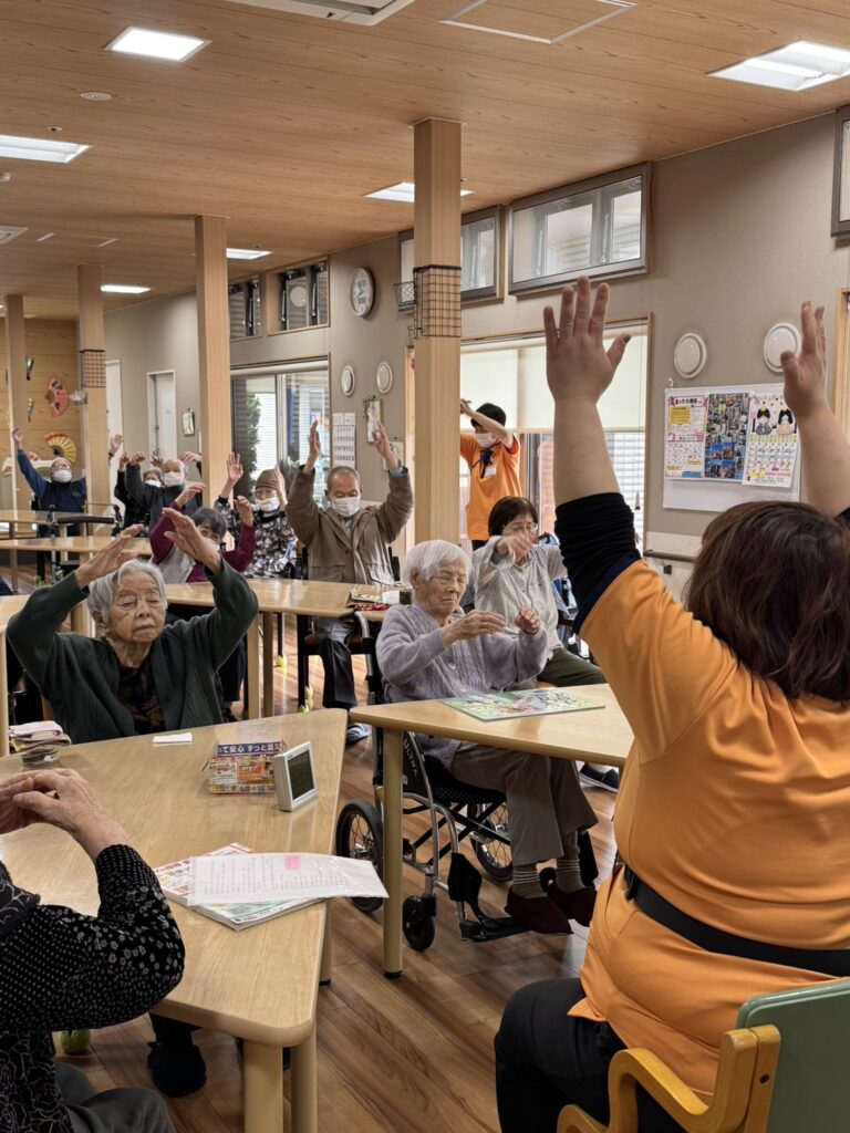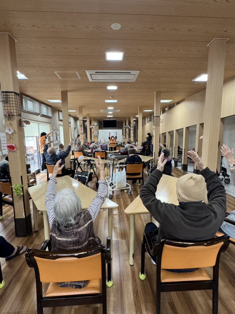 日曜日はデイサービスがお休みの利用者様が比較的多い日になり、沢山の方が体操に参加してくださっています。