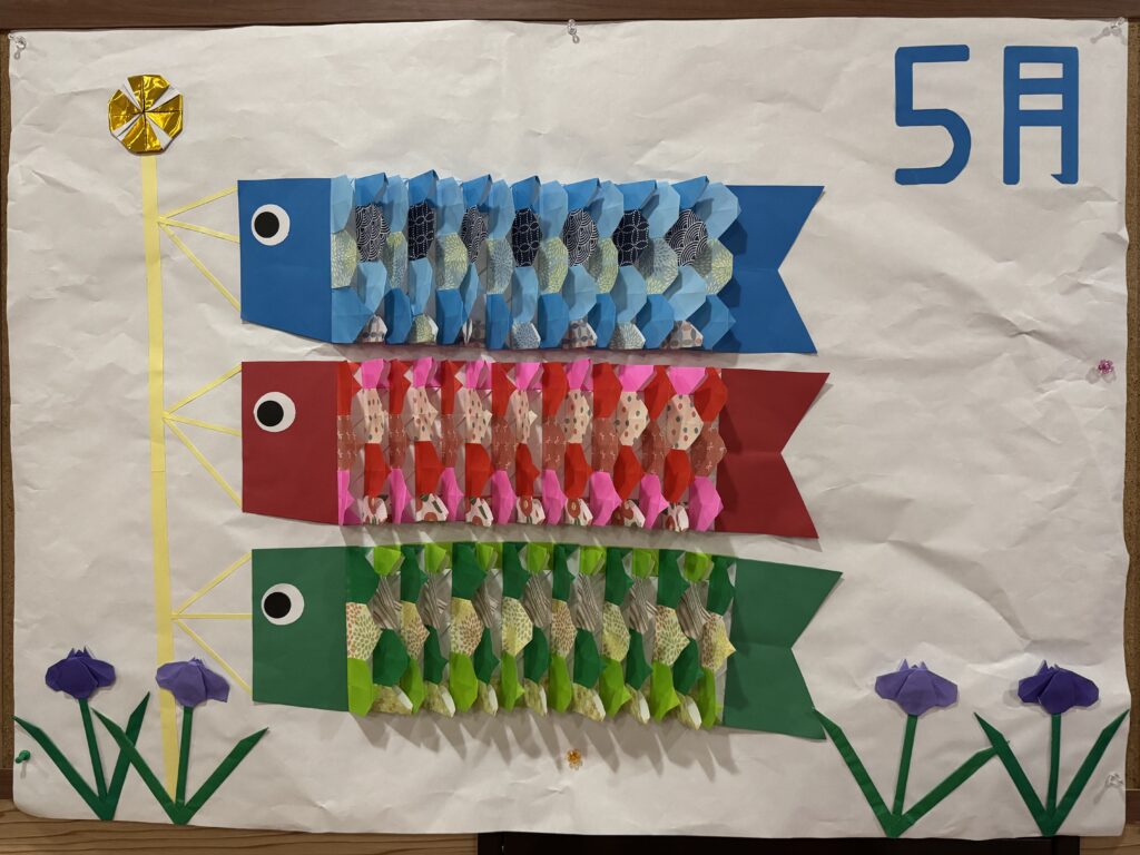 あいにくのお天気ですが‥☂️ゆっくりの和の掲示板は、こいのぼりが飾られています♪
